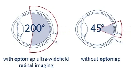 Comprehensive View: Ultra-widefield imaging will be performed on all comprehensive eye exams. This imaging captures up to ~90% of the retina in a single shot, providing a more comprehensive view than traditional methods, which only capture around 15%. This extensive view helps detect peripheral retinal diseases that might otherwise go unnoticed.